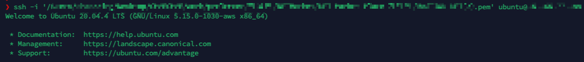 ssh -i [path]/[name].pem [USERNAME]@[IP Address]