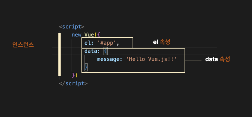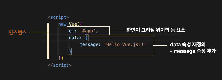 new Vue() 를 이용하여 인스턴스를 생성할 때,