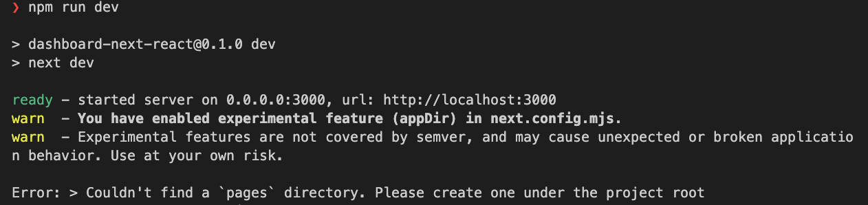 Error: > Couldn't find a 'pages' directory. Please create one under the project root