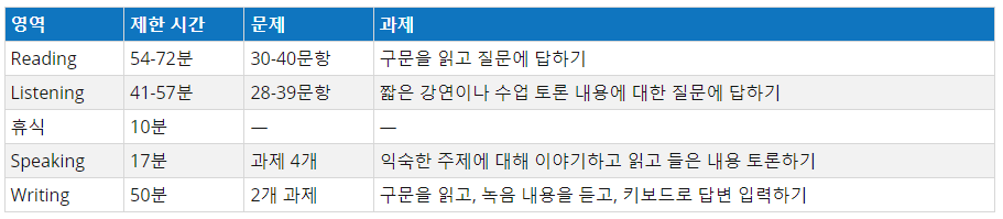 각 섹션별로 설명은 토플 공식 홈페이지에서 영상을 통해 확인 가능하네요 :)