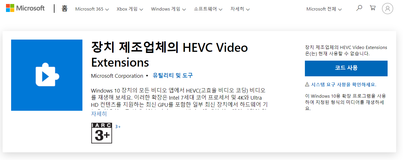 [동영상코덱]아이폰에서 정상으로 재생되는 영상, Windows 10에서 안나오는 오류 해결법 , HEVC 코덱(H.265 비디오용)을 무료로 다운로드