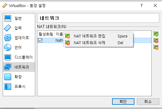 우클릭을 하여 NAT 네트워크 편집을 선택합니다.