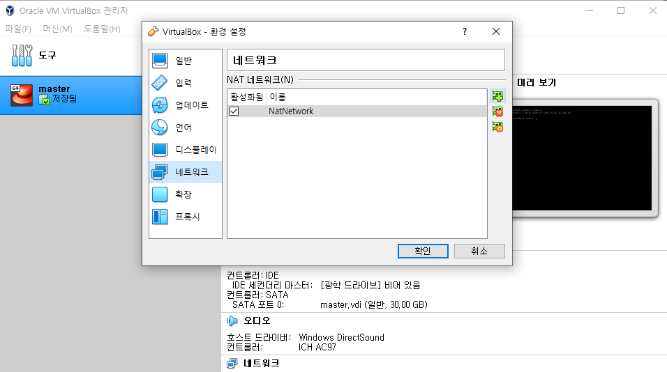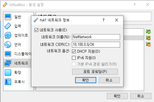 파일 -> 환경설정 -> 네트워크 -> + 버튼 선택하여 NatNetwork 생성합니다.