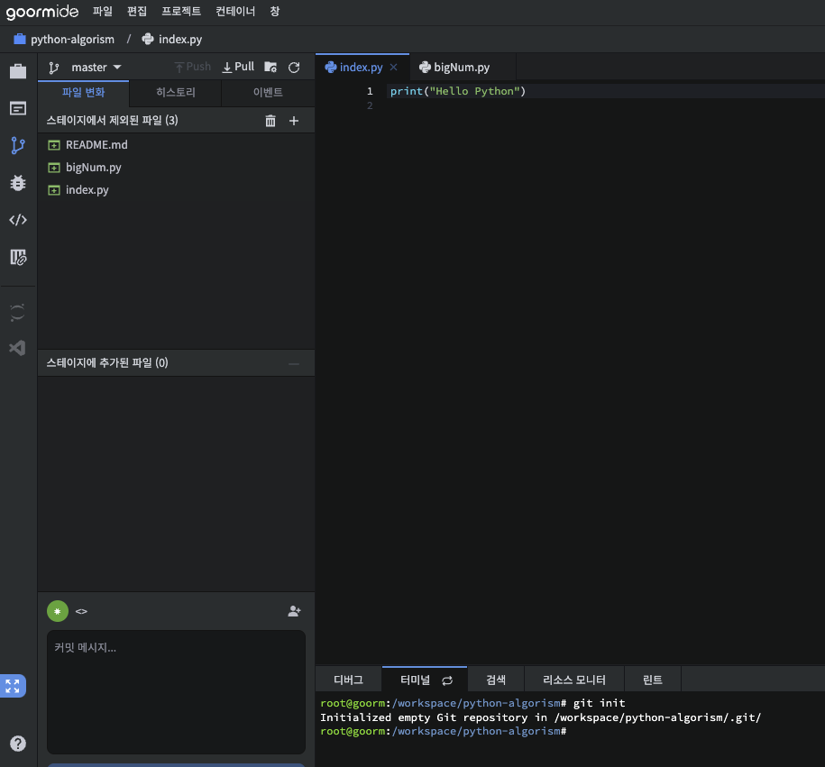 2. 터미널에 git init 입력
