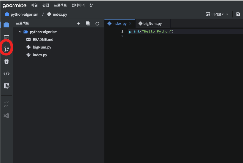 좌측에 Git 아이콘을 눌러줍니다!