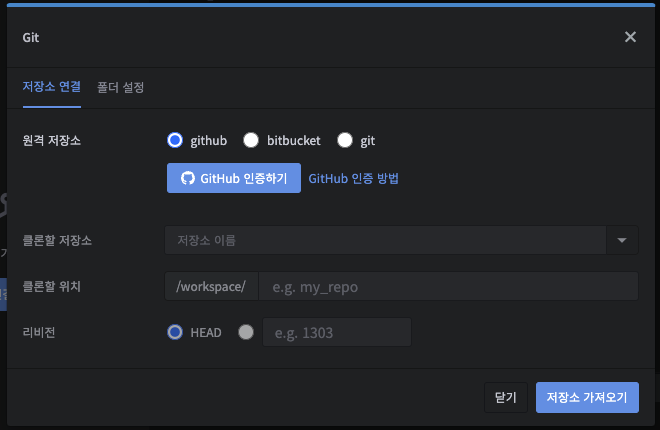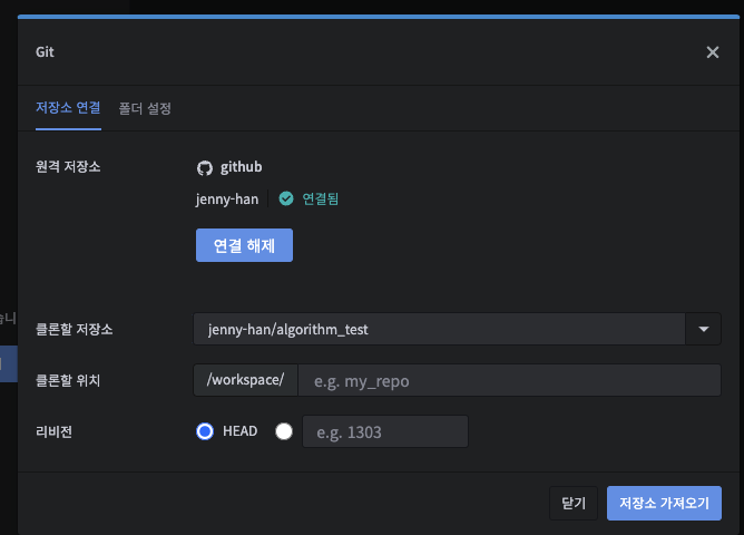 저장소 연결하기 버튼을 눌러줍니다